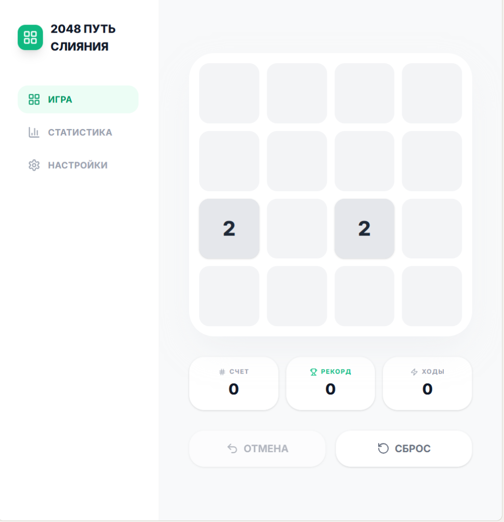 2048 «Путь слияния — это минималистичная числовая головоломка, в которой нужно двигать плитки по полю и объединять одинаковые числа. Каждое удачное слияние увеличивает значение плитки, а ваша задача — дойти до заветной 2048 (или даже выше), не заполнив все свободные клетки.